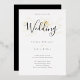 Une élégante invitation de mariage avec des illustrations florales en feuille d'or au texte noir. Cette belle invitation a un arrière - plan blanc sur le devant et un noir, déclaration, arrière - plan sur le dos. Customisez simplement cette invitation, ajoutez-la à votre panier et faites une merveilleuse fête mariage. Elégant or floral blanc Mariage noir Foil Invitation Conception de vacances | ©Melissa Patton - Designer