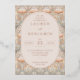 This elegant wedding invitation features a symmetrical layout with a central oval frame filled with soft peach color, surrounded by stylized floral motifs in shades of pale pink, cream, and muted green. The design employs a classic serif font for the text, creating a timeless appeal, while the Art Nouveau-inspired style adds a touch of sophistication with its flowing lines and organic forms. Perfect for couples seeking a refined and graceful aesthetic, this invitation sets the tone for a memorable celebration.