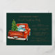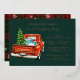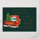 Vintage Red Truck Tree Family Christmas Party Invitation. Invite loved ones to your annual family Christmas party with our Plaid Family Christmas Party Invitation. This real foil card combines traditional holiday aesthetics with a contemporary twist that perfectly sets the tone for your seasonal celebration. The front of this charming invitation is adorned with a heartwarming illustration of a classic red truck, making its way home for the holidays, with a decorated Christmas tree secured in the back.