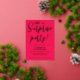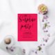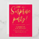 Voici une nouvelle invitation à la fête d'anniversaire adulte moderne et élégante avec un arrière - plan rouge avec un texte de typographie manuscrite en or qui dit "shh! c'est une fête surprise". Customisez cette carte de modèle en ajoutant vos propres informations de fête.