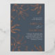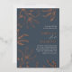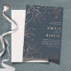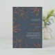 Découvrez cette oeuvre enchanteresse et originale, avec des tiges florales et botaniques gracieuses en papier d'aluminium authentique sur un fond bleu profond et poussiéreux. Avec son esthétique distincte et raffinée, c'est un choix idéal pour le couple contemporain en quête d'élégance. Au verso de cette carte se trouve un arrière - plan d'aquarelle rose vif contrastant. Adaptez-le facilement avec vos détails individuels pour ajouter un épanouissement personnel qui reflète votre histoire d'amour.