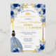 An elegant, modern design featuring blue and gold florals and a princess with foil accents. This trendy invitation is perfect for any 15th birthday or special occasion. This can be customized for any age. Coordinating products also available in this collection.
