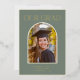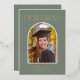 Célébrez la réussite de votre diplômé avec cet élégant faire-part de graduation en feuille d’or. Doté d'un cadre photo arché sophistiqué, d'une typographie serif classique et d'accents dorés luxueux sur un arrière - plan vert sage muet, ce design intemporel est parfait pour les diplômes du secondaire ou de l'université. Personnalisez avec le nom du diplômé, l’école et l’année de classe pour une invitation digne de ce nom.