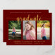 Invitation En Aluminium Élégant Script 3 Photo Maroon Graduation Gold