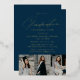 Invitation En Aluminium Élégant Script Navy 3 Photo Graduation Party