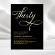 Invitation En Aluminium Élégant Script Trente Black Gold 30e anniversaire