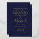 Invitation En Aluminium Élégant Signature Script Marine Blue Mariage Gold