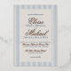 Invités formellement invitations à votre grand jour avec cet élégant Vieux Script Blue Stripe Mariage Foil Invitation! Cette conception comprend une police de script de feuille et des bandes bleues intemporelles. Personnalisez vos détails et le monogramme personnalisé au dos de Zazzle! Vous avez une demande personnalisée ? Message-moi !