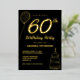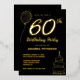 Élégante 60e fête d'anniversaire Black and Real Gold Foil Invitation avec ballon et gâteau d'anniversaire.