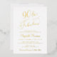 Elégante invitation de fête de 90ème anniversaire qui présente "90 & Fabulous" et son nom dans les scripts de calligraphie et les détails de la fête en lettres simples, le tout rendu dans votre choix d'or véritable, argent ou feuille d'or rose.