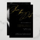 Élégante calligraphie officielle Mariage noir Photo personnalisée Enregistrer la date Invitation Modèle avec de la feuille d'or ou de l'argent