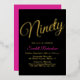 Elégante Black Pink 90th Birthday Party Gold Foil Invitation Personnalisez cette élégante invitation de fête d'anniversaire en feuille d'or rose avec le nom de la personne qui célèbre un jour très spécial dans leur vie et customisez tous les détails de la fête d'anniversaire. Un 90e anniversaire est une étape importante à célébrer. Marquez l'occasion en créant une fête et en envoyant des invitations à toutes les personnes spéciales de leur vie. Magasinez notre magasin pour les cadeaux que vous pouvez personnaliser avec ce même design élégant sur les cadeaux d'anniversaire et décorations de fête d'anniversaire.