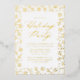 Elégante invitation de fête de vacances avec une bordure de flocons de neige en feuille d'or et branches de pin sur un arrière - plan blanc. "Holiday Party" s'affiche dans un script de calligraphie en feuille d'or avec les détails de votre fête indiqués ci-dessous. L'invitation de la fête des fêtes des fêtes des fêtes des fêtes des fêtes des fêtes des fêtes des fêtes des fêtes des fêtes des fêtes des fêtes des fêtes des fêtes des fêtes des fêtes des fêtes des fêtes des fêtes des fêtes des fêtes des fêtes des fêtes des fêtes des fêtes des fêtes des fêtes des neiges revient pour afficher un magnifique motif des fêtes.