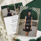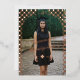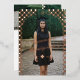 Célébrez votre diplômé avec style avec cette carte d'invitation et d'annonce de remise de diplôme à motif rétro élégant avec arche à carreaux et effet de feuille métallisée, un design moderne et ludique avec une touche rétro nostalgique et un style élégant avec une véritable feuille métallisée. Le recto présente une photo pleine de votre diplômé encadrée par une arche à carreaux rétro tendance, mise en valeur par un monogramme personnalisé à trois lettres qui combine des polices sérif classiques et élégantes. Le nom de votre diplômé apparaît en écriture fluide sur la photo, avec la promotion de [Année] affichée bien en vue ainsi qu'une icône subtile de chapeau de diplômé et le nom de l'école pour un look entièrement personnalisé et soigné. Le verso est conçu de manière réfléchie avec deux emplacements pour photos, divisés par un élément à carreaux coordonné pour compléter le recto, ainsi qu'un espace pour inclure les détails de la fête de remise de diplôme, ce qui en fait à la fois une annonce élégante et une invitation fonctionnelle. Parfait pour les élèves de terminale, les diplômés de l'université ou les célébrations universitaires