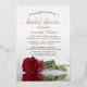 Cette belle invitation à la douche nuptiale présente un design magnifique avec une seule rose rouge à long tige réfléchissant dans un bassin d'eau. L'élégante calligraphie de script comprend du texte noir entrelacé avec de véritables accents d'or rose de feuille pressée. Élégantes, classieuses, sophistiquées et chics, ces invitations sont une merveilleuse façon de célébrer la mariée à être.