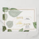 MARIAGE | Avec des feuilles printaniers dans un simple nettoyage Enregistrer la date avec un design de calligraphie florissant fantaisie en feuille - tout simplement stupéfiant. facile à customiser modèle mariage. Disponible en feuille d'or, feuille d'argent et feuille d'or rose.