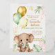 Invitation En Aluminium Elephant Brown Sage Green Balloons Baby Shower