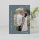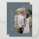 Cette feuille d'argent marine boho mariage enregistrer la carte de date est parfait pour un mariage moderne. Le design minimaliste présente une typographie simple mais élégante sur ardoise bleu-gris avec un air de sophistication moderne. Enregistrer la date est fait dans un luxueux papier d'argent pressé. Personnalisez votre enregistrement des dates avec une photo fiançailles, vos noms et votre date de mariage. Ajoutez votre site Web mariage au verso de la carte.