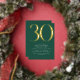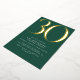 Invitations de style moderne à 30ème anniversaire avec un grand cap "30" en véritable papier métallique. Les détails de votre événement sont imprimés ci-dessous en caractères blanc mat. Design unisexe avec accents or sur un vert profond. (Les couleurs Arrière - plans peuvent être modifiées à l'aide de l'outil de conception. Vous pouvez également modifier le type de feuille métallique.)