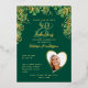 Ces élégantes invitations d'anniversaire vert émeraude et or avec la verdure d'eucalyptus sont conçues pour un anniversaire à thème de 50 et Fabuleux. Les modèles les rendent faciles à personnaliser avec votre nom, date et heure, lieu et autres informations. Veuillez également télécharger votre photo par modèle pour avoir la même image en forme de coeur. Si vous le souhaitez, vous pouvez également modifier le jalon pour 30, 40, 60, 70, etc. L'arrière est en vert émeraude massif.