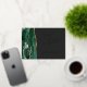 Cette élégante carte de datation moderne comporte une bordure en aquarelle vert émeraude, parée de parties scintillant en faux or. Le texte personnalisable combine écriture manuscrite de feuille d'or, cuivre et polices italiques sur un arrière - plan gris de charbon de bois foncé. L'envers est assorti d'une agate vert émeraude et or.