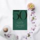 Invitations modernes de 50ème anniversaire avec un grand cap "50" en véritable feuille métallique. Les détails de votre événement sont imprimés ci-dessous en caractères blanc mat. Feuille d'or sur un arrière - plan vert émeraude.