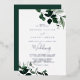 Cette carte de faire-part de mariage en feuille d'argent vert émeraude est parfaite pour un mariage boho. Le design élégant et rustique présente des feuilles d'aquarelle vert foncé moody et des eucalyptus aux tons bohèmes modernes. Doté d'un luxueux texte en feuille d'argent.
