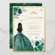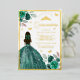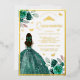 Invitation En Aluminium Émeraude Vert Robe Papillon Quinceanera Or