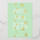 Des empreintes de pattes de chat et de chien dorées sur les mots "Amenez vos animaux" qui peuvent être remplacés par votre message personnalisé. Personnalisez le verso de votre carte pour inviter amis avec ou sans poils à votre occasion spéciale.