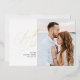 Cette carte moderne de save the date présente un script de calligraphie moderne en feuille d'or avec un support rayé. Téléchargez votre propre photo et personnalisez les informations pour inclure les détails de votre mariage.