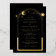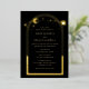 Mystical Black Gold Sun Star Moon Astronomy Space Foil Wedding Invitations présente le soleil, la lune et les étoiles avec un cadre doré sur un arrière - plan noir. À l'intérieur, vous trouverez vos informations d'invitation de mariage personnalisées. Personnalisez en modifiant le texte dans les zones de texte. Conçu pour vous par ©Evco Studio www.zazzle.com/store/evcostudio