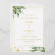 Ton romantisme est à feuillage persistant. Cette faire-part de mariage en feuille d'or éclatante présente un cadre doré avec des feuilles d'eucalyptus peints dans les coins sur un arrière - plan blanc. Dans le cadre, vos noms et détails mariages sont affichés dans de véritables polices élégantes de feuille d'or. L'arrière est ornée de feuilles d'eucalyptus sur un simple arrière - plan vert clair. Certaines images sont également amovibles. Customisez-le avec vos propres détails