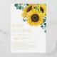 Invités Invitations à votre événement avec cette invitation personnalisable baby shower de feuille d'or. Il est doté de tournesols aquarelles et de feuilles d'eucalyptus. Personnalisez cette invitation au baby shower d'eucalyptus en ajoutant vos propres détails. Cette invitation au baby shower de tournesol est parfaite pour les baby showers d'été et les baby showers d'automne.