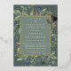 L'invitation à la première communion sainte botanique chic comporte une bordure de feuilles botaniques verts luxuriants et de feuillage d'eucalyptus à l'aquarelle avec garniture en feuille d'or. Personnalisez avec vos détails de cérémonie et de fête en lettres modernes sur un ton sur ton moss arrière - plan vert.