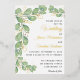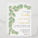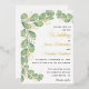 Ces invitations de mariage florales à l'aquarelle de la verdure eucalyptus et le texte noir et or sur l'arrière - plan blanc sont élégants et uniques. Le texte modèle facilite la personnalisation. Le feuillage botanique orne les côtés avant et arrière des invitations de mariage.