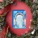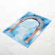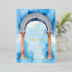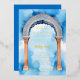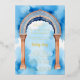 Exquisite Indian Architecture Arch Watercolor in Blue Shades Background Naming Ceremony Metallic Foil Invitation Card.