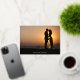 Carte élégante de faire-part de date horizontale avec photo et calligraphie à l'écriture réelle en feuille simple. Personnalisez-la en ajoutant votre propre photographie et détails au recto et au verso pour la rendre unique.