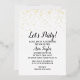Cette Invitation Gold Foil Party Confetti Retraite Party Let's Party est parfaite pour une célébration de retraite élégante ou une réception élégante. Le design présente un vrai confetti en feuille d'or à la mode avec une élégante calligraphie gris foncé sur un arrière - plan blanc. L'arrière de l'invitation est de solide teinte faux or.