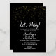 Cette Confetti d'or Let's Party sur Black graduation party or foil invitation est parfait pour une célébration de graduation classe, que ce soit du lycée, collège, école de soins infirmiers, de l'école supérieure, ou n'importe où. Le design présente d'élégants confettis en feuille d'or sur un arrière - plan noir avec une simple calligraphie blanche.