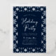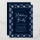 Élégantes invitations de fêtes de fin d'année avec vos détails de fête en papier argenté encadré par un motif de flocon d'argent sur un arrière - plan de la marine. Les invitations de fêtes de fêtes de fêtes de fêtes de neige peuvent être utilisées pour une variété de fêtes de vacances. Modifiez simplement le nom de l'événement en utilisant les modèles.