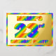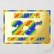 L'avant de cette carte d'invitation en papier alu pour une fête d'anniversaire vibrante et excitante pour un vingt-troisième anniversaire comporte un nom personnalisé, un grand nombre « 23ème », le message « FÊTE D'ANNIVERSAIRE ! » et une bordure, tous avec un motif dégradé inspiré d'un spectre de couleurs arc-en-ciel joyeux et coloré. Le verso comporte des détails personnalisés sur l'événement, tels que la date, l'heure, le lieu et toute autre information importante. Des invitations accrocheuses, stimulantes et modifiables comme celles-ci pourraient être utilisées pour inviter des invités à une fête d'anniversaire organisée pour honorer le 23ème anniversaire de quelqu'un.