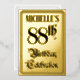 Le recto de cette conception de carte d'annonce de fête d'anniversaire quatre-vingt-huitième élégante et luxueuse présente le message « Célébration du 88e anniversaire » dans un texte de style calligraphié opulent. Il comporte également un nom personnalisé. Le verso présente des détails personnalisés sur l'événement, tels que la date, l'heure, le lieu et toute autre information importante. Des invitations ornées, élégantes et modifiables comme celles-ci pourraient être utilisées pour inviter des invités à une fête d'anniversaire organisée pour célébrer le 88e anniversaire de quelqu'un.