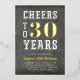 Célébrez son anniversaire d'étape avec ces invitations festives de fête avec "applaudissements à XX ans" en papier blanc et en feuille d'or sur un arrière - plan brossé tableau. Personnalisez avec les détails de votre fête en dessous. Exemple illustré pour le 30e anniversaire.