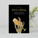 Héberger un enfant adulte seulement Halloween bash? Invitations amis avec ces invitations éffrayantes chic en feuille d'or avec une main squelettique levant une coupe de champagne pour un toast. Personnalisez avec les détails de votre fête d'anniversaire d'Halloween.
