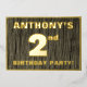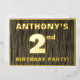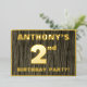 Le devant de cette carte d'invitation en feuille métallisée pour une deuxième fête d'anniversaire audacieuse comporte un nom personnalisé, un grand nombre «2ème», le message «FETE D'ANNIVERSAIRE !», et une bordure, le tout en feuille métallisée. Il y a un motif d'apparence rustique mais sophistiquée, inspiré du faux grain de bois, pour l'arrière-plan du devant. Le verso comporte des détails personnalisés sur l'événement, tels que la date, l'heure, le lieu et toute autre information pertinente. Des invitations personnalisables comme celles-ci pourraient être utilisées pour inviter les participants à une fête d'anniversaire organisée pour célébrer le 2ème anniversaire de quelqu'un.