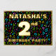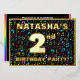 Le devant de ce design de carte d'invitation en aluminium pour une deuxième fête d'anniversaire amusante et rythmée comporte un nom personnalisé, un grand nombre « 2ème », le message « FÊTE D'ANNIVERSAIRE ! » et une bordure. Le fond de la face avant présente un motif joyeux et coloré de notes de musique. Le verso comporte des détails personnalisés sur l'événement, tels que la date, l'heure, le lieu et toute autre information utile. Des invitations personnalisées comme celles-ci pourraient être une façon amusante d'inviter des invités à une fête/réunion d'anniversaire organisée pour célébrer le 2ème anniversaire de quelqu'un.