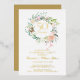 Avec une véritable feuille d'or et une délicate guirlande florale aquarelle, cette invitation chic et botanique pour une fête surprise de 50e anniversaire de mariage peut être personnalisée avec vos informations spéciales d'anniversaire d'or. Au verso, une guirlande florale assortie encadre les dates d'anniversaire en texte blanc élégant sur fond or. Conçu par Thisisnotme©