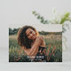 Célébrez votre diplômé avec cette invitation de fête de fin d'études tendance avec "Diplômé" en lettrage brosse à feuille de rose dorée fluide superposée sur une photo pleine page. Le verso présente les détails de l'événement "Fête de fin d'études" en typographie noire classique sur fond blanc. Tout le texte est entièrement personnalisable, y compris le nom du diplômé, l'école, l'année de promotion et les détails de l'événement.