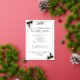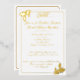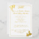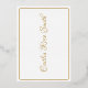 Ceci est une invitation à une fête de mariage de 5' x 7", présentée avec élégance avec des accents de feuille d'or. Il s'agit d'une véritable garniture en feuille, disponible en or, argent et or rose. Les accents en feuille comprennent des motifs de fleurs de tulipe et un contour en feuille sur le devant. Le verso comprend le nom de la future mariée.