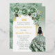 Invitation En Aluminium Fête de Quinceañera Fleurie Vert Sauge Élégant